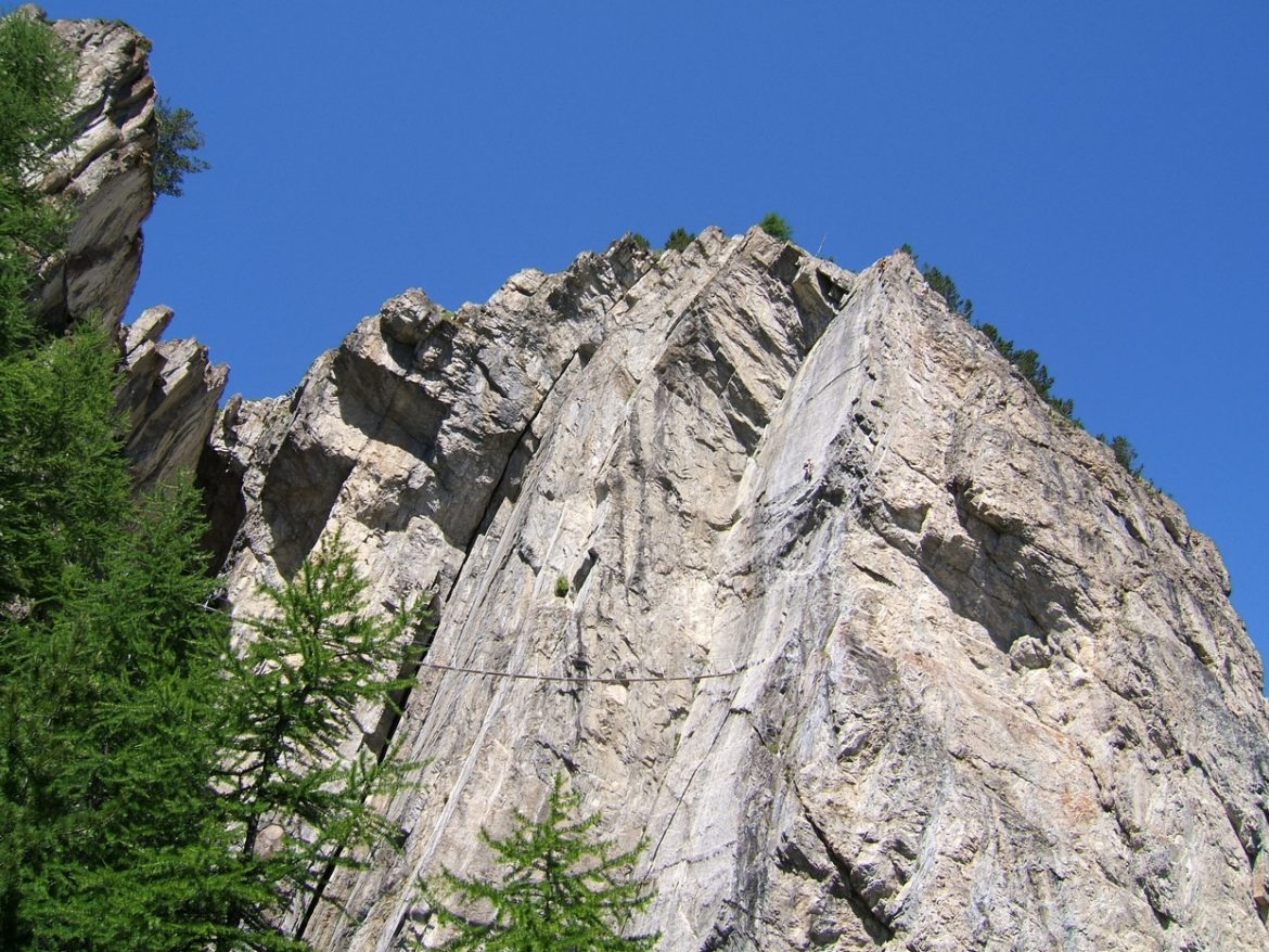 On entame la Via Ferrata par une première section assez tranquille. Elle suit une arrête pour commencer, avant des commencer la traversée, avec suffisamment de végétation et peu de vide, ce qui me permet d’être serein, mais lors de la traversée des ponts en planche fixe.