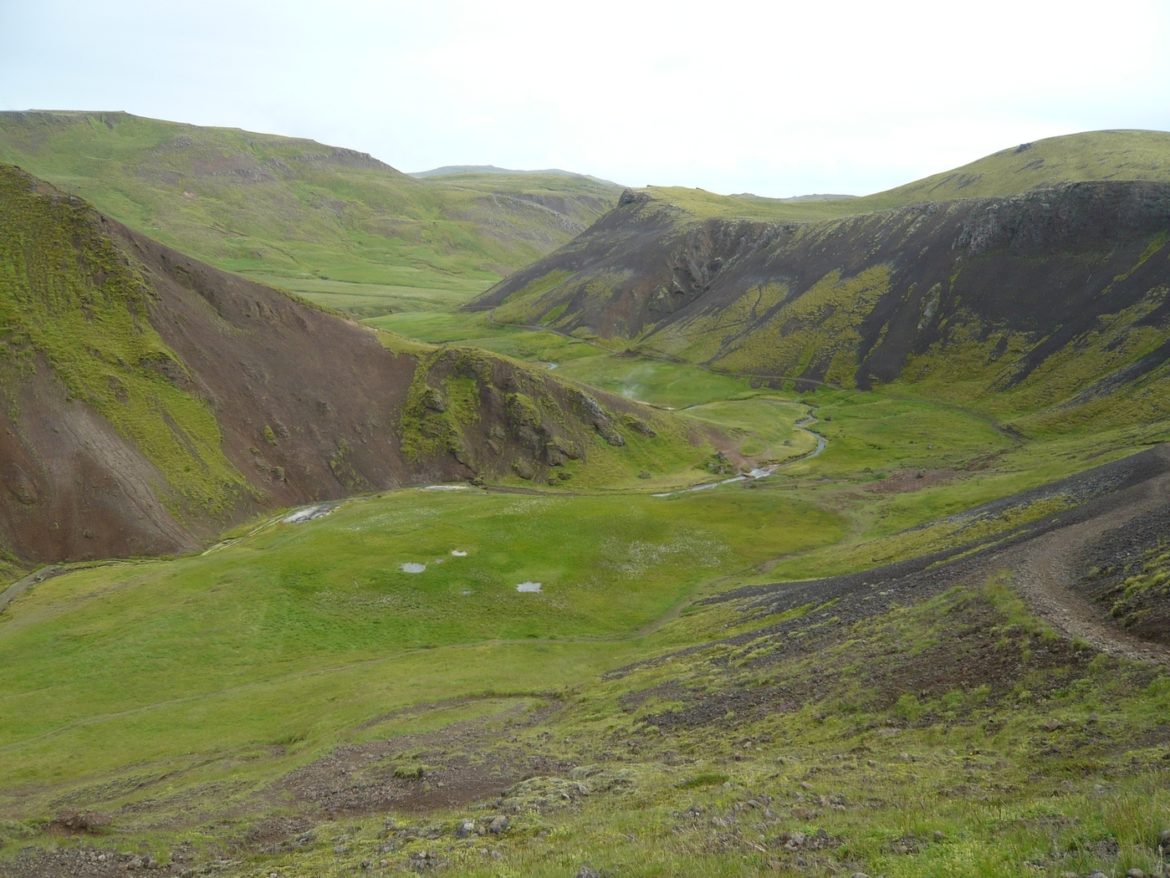 Promenade d’une bonne heure pour aller se baigner dans la source d’eau chaude de Klambragil. On passe d’abord devant des sources d’eau sulfurée ou de boue bouillante, avant de voir un spectacle assez particulier : des personnes qui se baignent dans un torrent de montagne, entourées de randonneurs en doudounes ! On s’y essaie, d’abord dans le torrent d’eau chaude, qui s’avère rapidement presque brûlant, puis dans une petite mare dans laquelle il se mélange avec un torrent d’eau froide. Nous voilà dans le mitigeur, l’eau changeant de température en fonction du va et vient de personnes en amont qui modifient le courant de chaque cours d’eau. Super moment, ça détend et on papote.