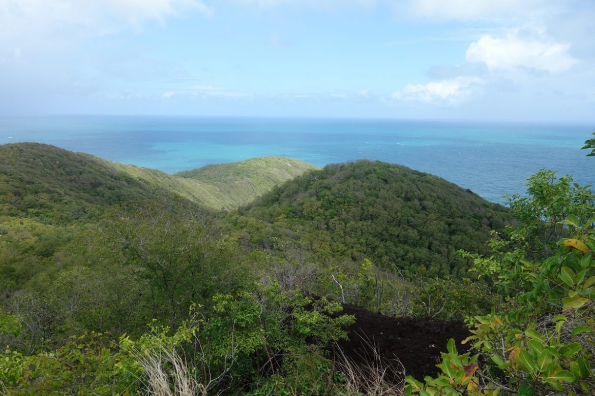 Lever aux aurores et petit déjeuner comme la veille. Aujourd’hui grande boucle plane sur la presqu’île de la Caravelle, après un trajet un peu long en minibus. On sera aujourd’hui accompagné par le groupe couleur caraïbe, qui n’ont habituellement des activités qu’à la demi-journée. Notre guide Xavier nous prévient que l’on aura droit à une mosaïque de paysages : forêt sèche, falaises, savane et mangrove, les paysages vont changer du tout au tout ! Premier arrêt au niveau du phare depuis lequel on a une vue imprenable sur toute la presqu’île.