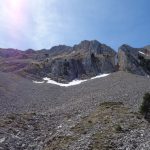 Descente vers le haut plateau une fois restaurés, avec un petit passage en mode glissade sur un gros névé. Une fois en bas on se dit qu’est bien content d’avoir fait le circuit dans ce sens-là, la montée aurait été plus tendue.