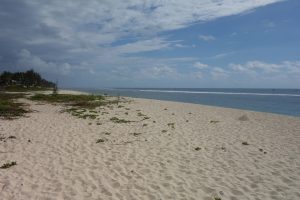 Retour à l’hôtel tranquillement par la plage avec une seule envie en tête : profiter de la piscine pour me rafraîchir. Je passe devant les panneaux interdisant la baignade en-dehors du lagon, car les filets anti-requins ne sont pas opérationnels, ça fait un peu frémir. Après une portion de plage donnant uniquement sur des maisons, on trouve une large bande de terre arborée sous laquelle de nombreuses familles sont venues en ce début de week-end, avec pas mal d’anniversaires à fêter. Certains sont même venus avec leur chaîne hi-fi : la sortie pique-nique est un art ici !