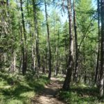 Ça monte ensuite pas mal sur un petit sentier en lacets dans la forêt de mélèzes. Elle est bien claire, il y a une bonne régénération au sol et les branches sont toutes douces quand on les frôle. On rejoint le torrent se transformant en cascade.