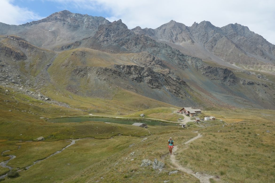 On remonte vers le col Longet et tombe sur un refuge italien flambant neuf. Petit mais il semble bien équipé. On poursuit jusqu’à un autre lac pour chercher un coin pic-nic un peu à l’abri du vent.