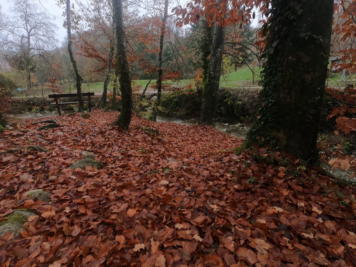 Un beau tapis de feuilles mortes jonche le sol, une mousse bien verte pousse sur les arbres, dont certains se sont affalés en travers du chemin. C’est humide, parfois boueux, ça glisse, un peu de terrain d’aventure pour changer.  C’est plus une sente qu’un chemin maintenant, qui me fait passer d’un côté et de l’autre du cours d’eau, jusqu’à disparaître dans la végétation, ce qui me pousse à faire demi-tour.