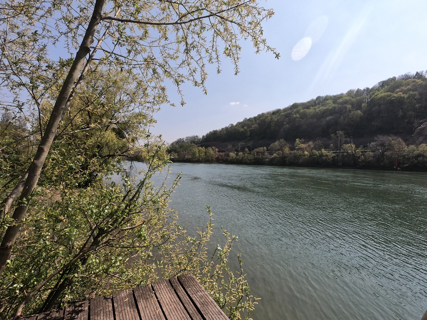 Demi-tour afin de redescendre en rive gauche via une voie dédiée sur trois bons quarts du trajet, avec un petit passage par l’ancien chemin de halage qui a été bien ré-habilité pour les piétons. J’admire un moment l’autre flanc de l’île Barbe avant de boucler la boucle.