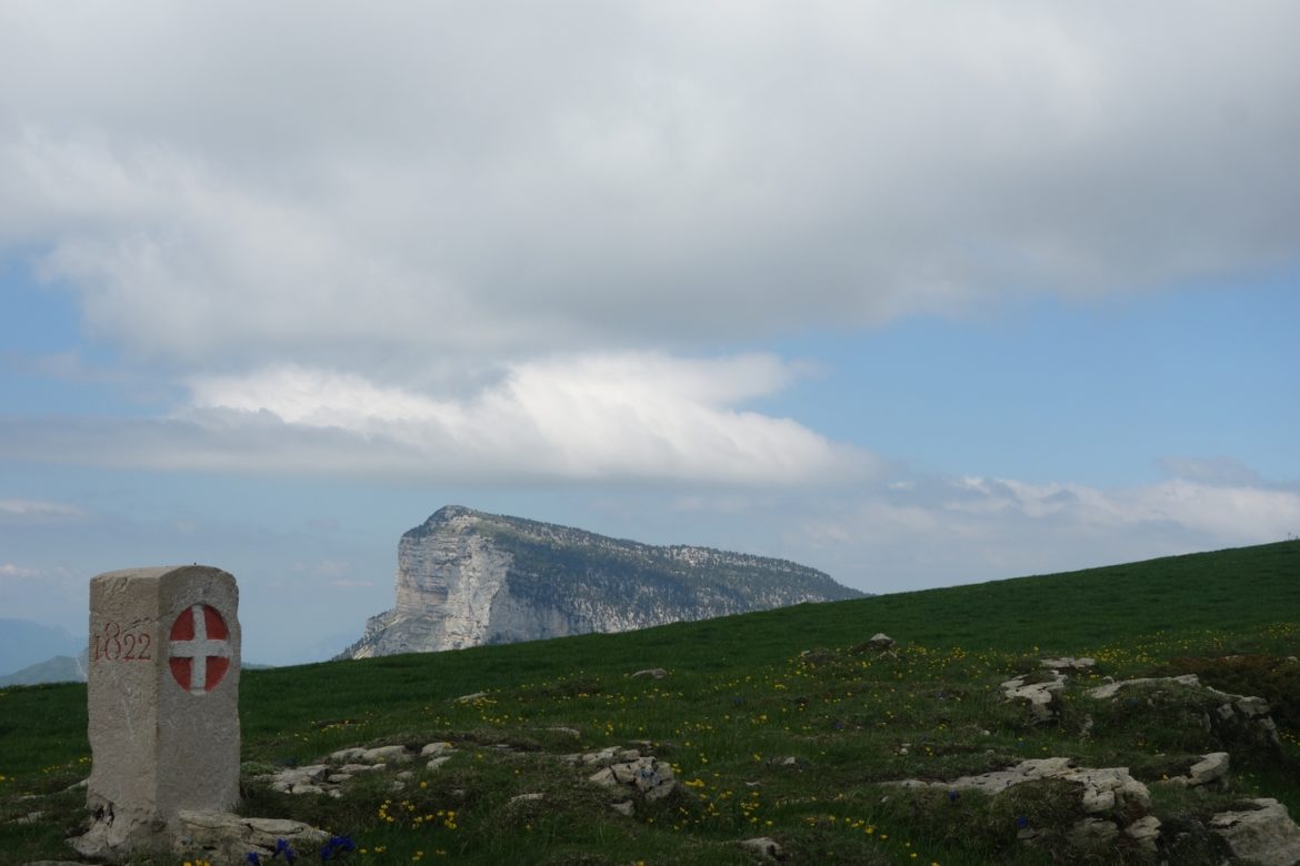 Je prends à gauche pour passer la Porte de l’Alpette, rejoindre le Cernon (pas beaucoup d’eau) puis rejoindre le Pré Orcel par une longue traversée sous la falaise. Une portion en forêt, à flanc de pente bien raide, n’est pas très large, les combes parfois encombrées par des débris. Je suis content de trouver le parking, qui annonce un changement de paysage.