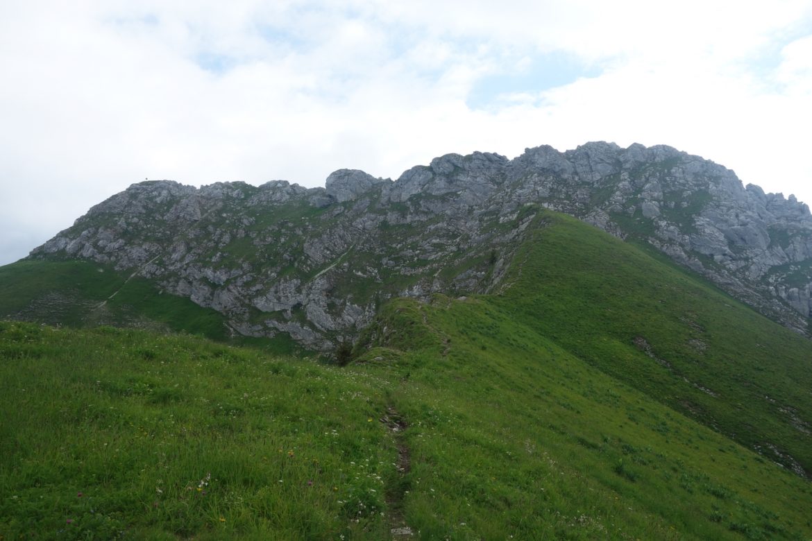On suit alors une crête herbeuse d’où je vois les sommets réalisés plus tôt : le Pecloz, l’Armenaz et le col de l’Arclusaz. Un peu raide par endroit mais très praticable.