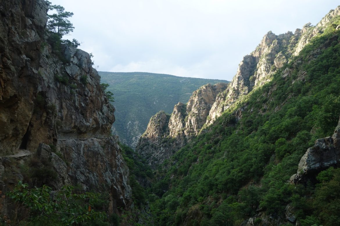 Le temps se découvre vers 18h, on décide d’aller visiter les gorges. La chaleur de la journée, la route et les deux belles sorties de trail font que je suis un peu dans les vapes. Je décolle pas très réveillé, en pantalon et en laissant le drone dans la voiture. Dommage car il va faire chaud finalement, et on aurait pu faire de belles images là-haut.