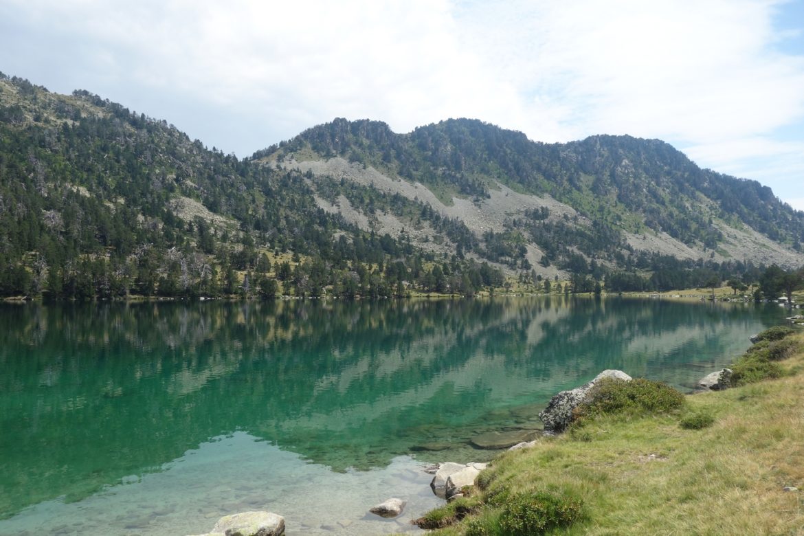 Petit déjeuner sur le parking avant de profiter des commodités de la station. Dommage que l’eau soit un peu chaude pour remplir les gourdes. On monte tranquillement en fond de vallée avant de laisser le GR sur notre gauche et nous engager dans des lacets débouchant sur le lac Dets Coubous, pas très rempli. Un peu de monde, il faut dire que c’est très accessible et renommé comme endroit.