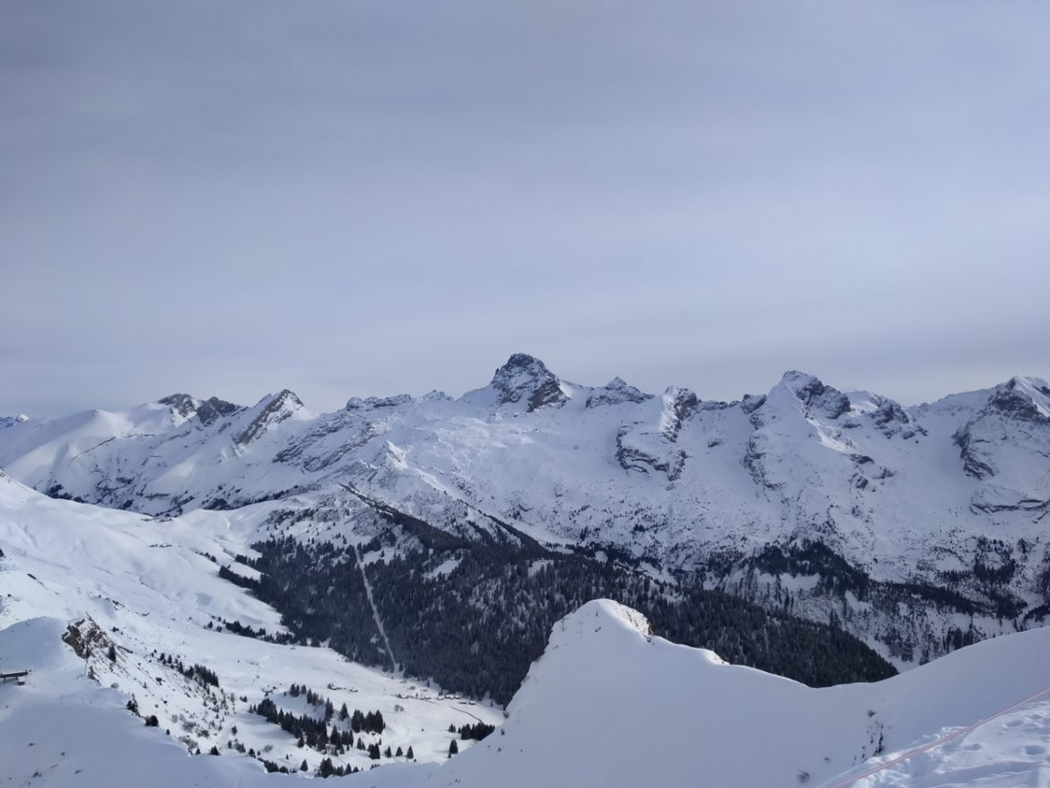 Dernière journée sur place, je me décide pour le Mont Lachat en split, juste derrière l’appartement. Floriane (partie pour le Roc des Tours) me conseille sur l’itinéraire à suivre suite à sa sortie en début de semaine. L’ascension est plutôt facile, avec trois quart de piste et une longue traversée à flanc sur une bonne trace. Les cuisses brûlent un peu sur la fin, mais surtout parce que j’ai pris un bon rythme dans les derniers lacets.