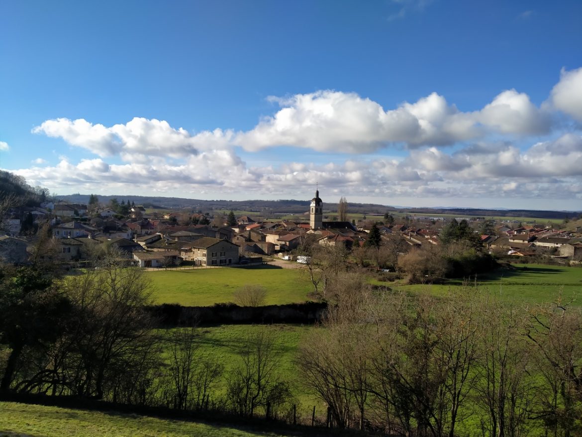 Départ de Lagnieu pour une petite boucle qui m’emmènera sur les hauteurs d’Ambérieu. Le temps est encore frais, avec des traces de neige en sous-bois. Les apparitions du soleil font beaucoup de bien.
