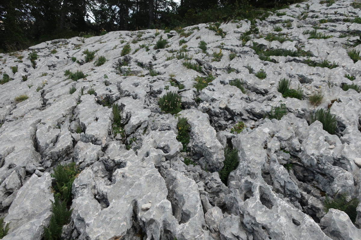 Il faut cependant rester du côté gauche pour poursuivre l’ascension, avant de rejoindre la crête que l’on suivra jusqu’en haut. J’y croise plusieurs personnes qui descendent et me demandent confirmation que c’est bien praticable et donne bien accès au tour dans la paroi. Le sommet est vite là, avec vue sur toute l’enfilade des falaises bordant les plateaux du Vercors.