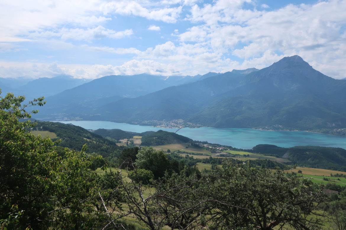 Je profite de la descente sur Embrun avant une dizaine de kilomètre sur la grand route, passage malheureusement obligé en rive sud du lac. La circulation se calme heureusement une fois passé Savines. Belle montée sur une route assez tranquille jusqu’à la Sauze-le-Lac et son belvédère avant de redescendre au niveau de flot et remonter le bras alimenté par l’Ubaye. J’y partage quelques kilomètres avec un néerlandais participant à une course au très long cours dont je n’ai malheureusement pas saisie le nom, ni retrouvé sur internet en rentrant.