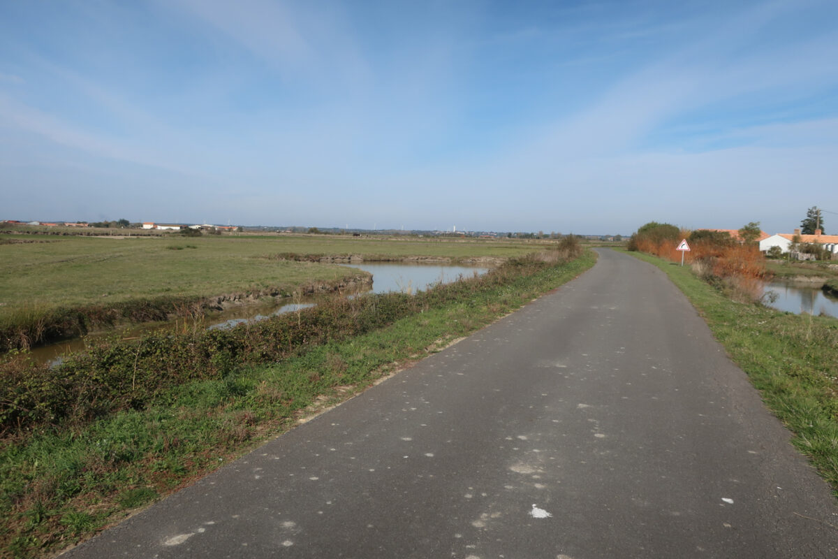 Départ de Villeneuve-en-Retz pour un tour dans les marais breton. La route sera bien plus plane ici, avec les bonnes odeurs de la proximité de l’océan.
